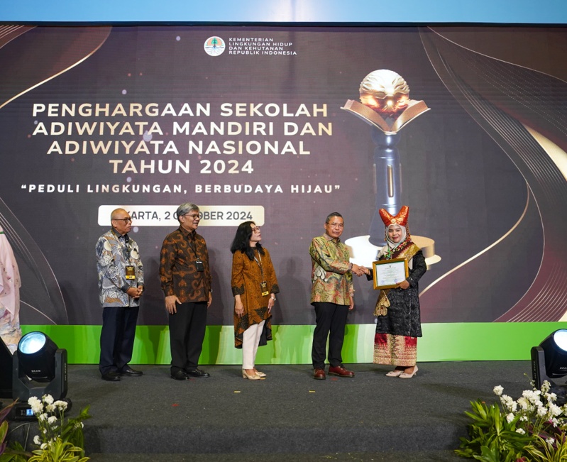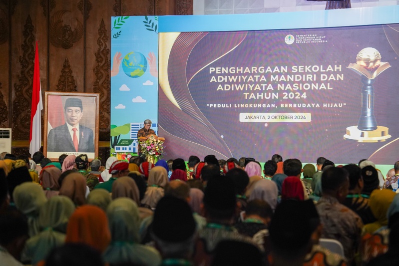 Kementerian Lingkungan Hidup dan Kehutanan (KLHK) memberikan penghargaan kepada 720 sekolah dari 31 provinsi di seluruh Indonesia yang berhasil meraih predikat Adiwiyata Mandiri dan Adiwiata Nasional Tahun 2024. Wakil Menteri Lingkungan Hidup dan Kehutanan (LHK) Alue Dohong, yang mewakili Menteri LHK Siti Nurbaya, secara langsung memberikan Penghargaan kepada 208 Sekolah Adiwiyata Mandiri dan 512 Sekolah Adiwiyata Nasional Tahun 2024 di Jakarta, Rabu (2/10/2024).