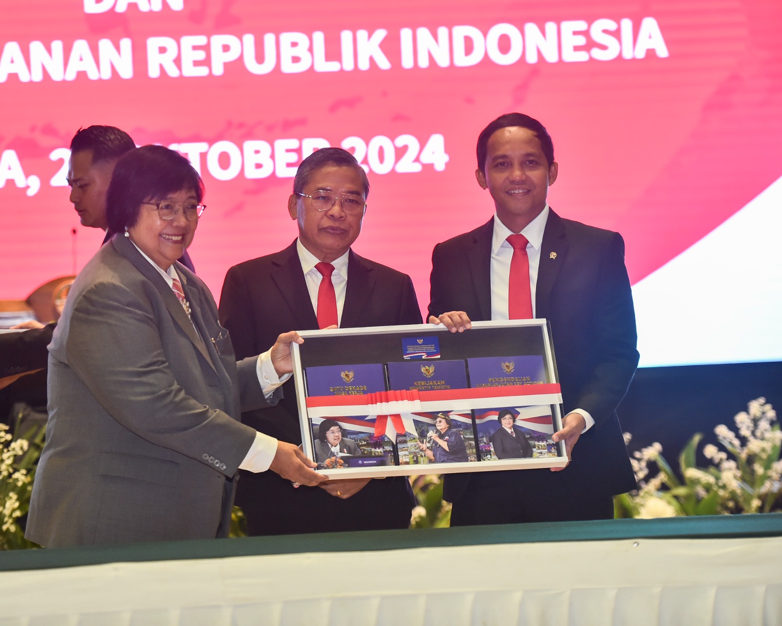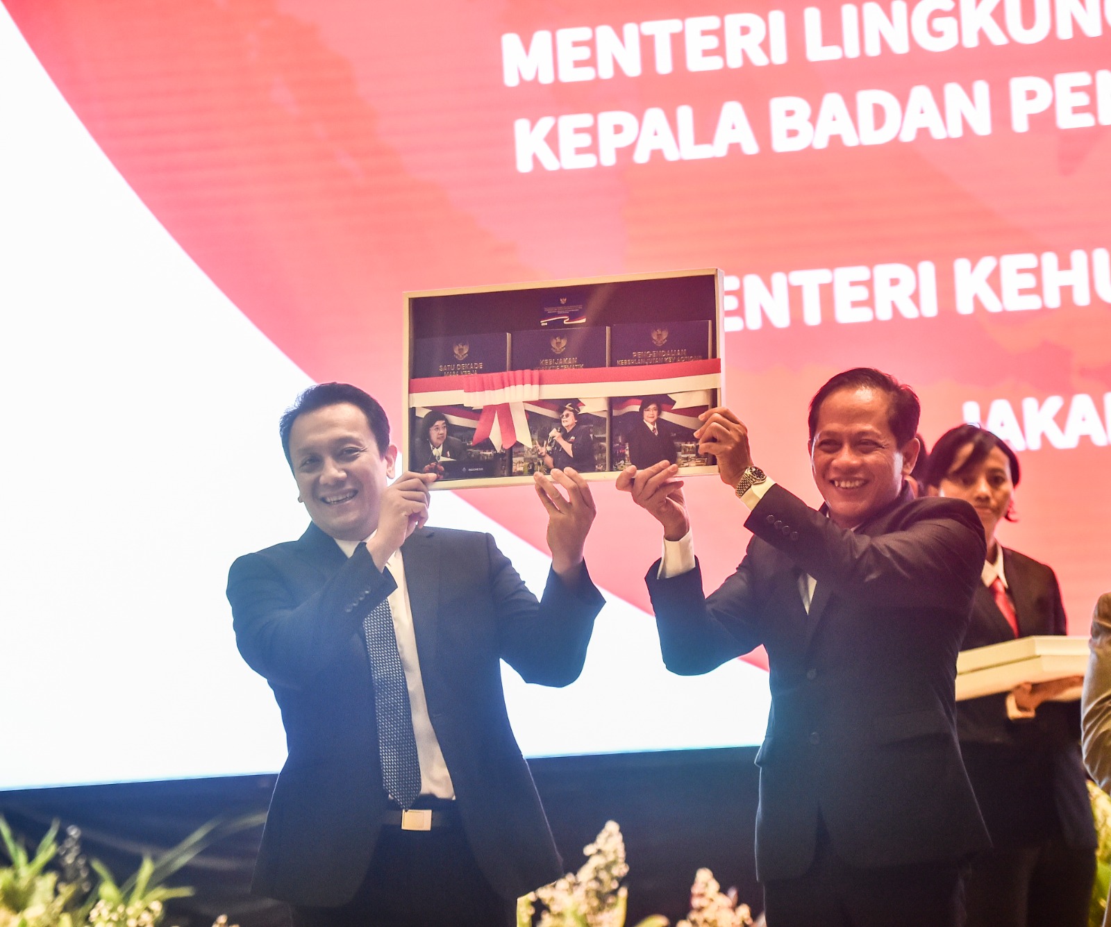 Terkait hal tersebut, dilakukan serah terima jabatan sekaligus pisah sambut antara Menteri Lingkungan Hidup dan Kehutanan (LHK) Siti Nurbaya, didampingi Wamen LHK Alue Dohong, kepada Menteri Lingkungan Hidup (LH)/Kepala Badan Pengendalian Lingkungan Hidup (BPLH), Hanif Faisol Nurofiq, didampingi Wamen LH/Wakil BPLH Diaz Faisal Malik Hendropriyono, juga kepada Menteri Kehutanan (Menhut), Raja Juli Antoni, didampingi Wakil Menteri Kehutanan, Sulaiman Umar, di Jakarta, Selasa (22/10/2024).