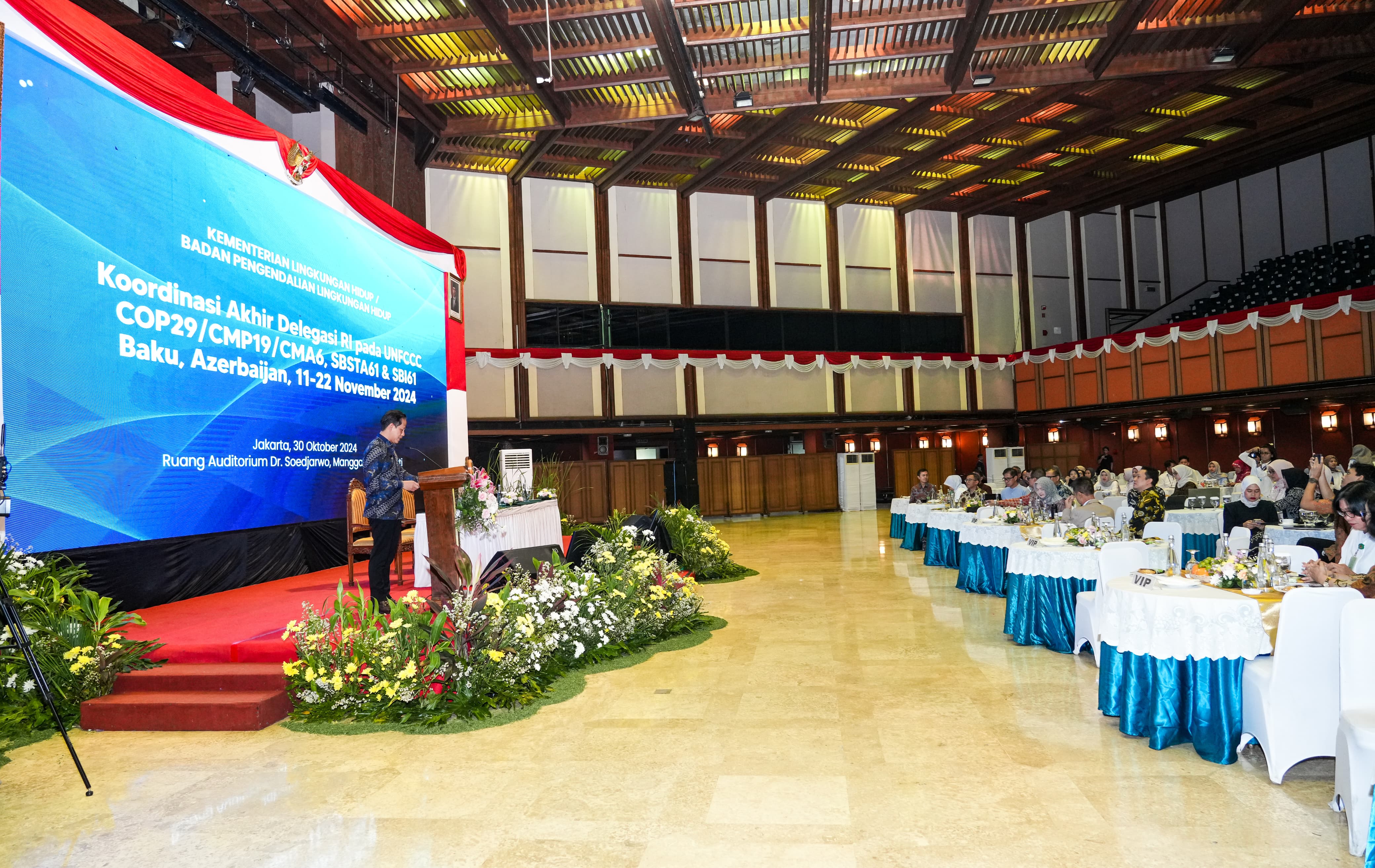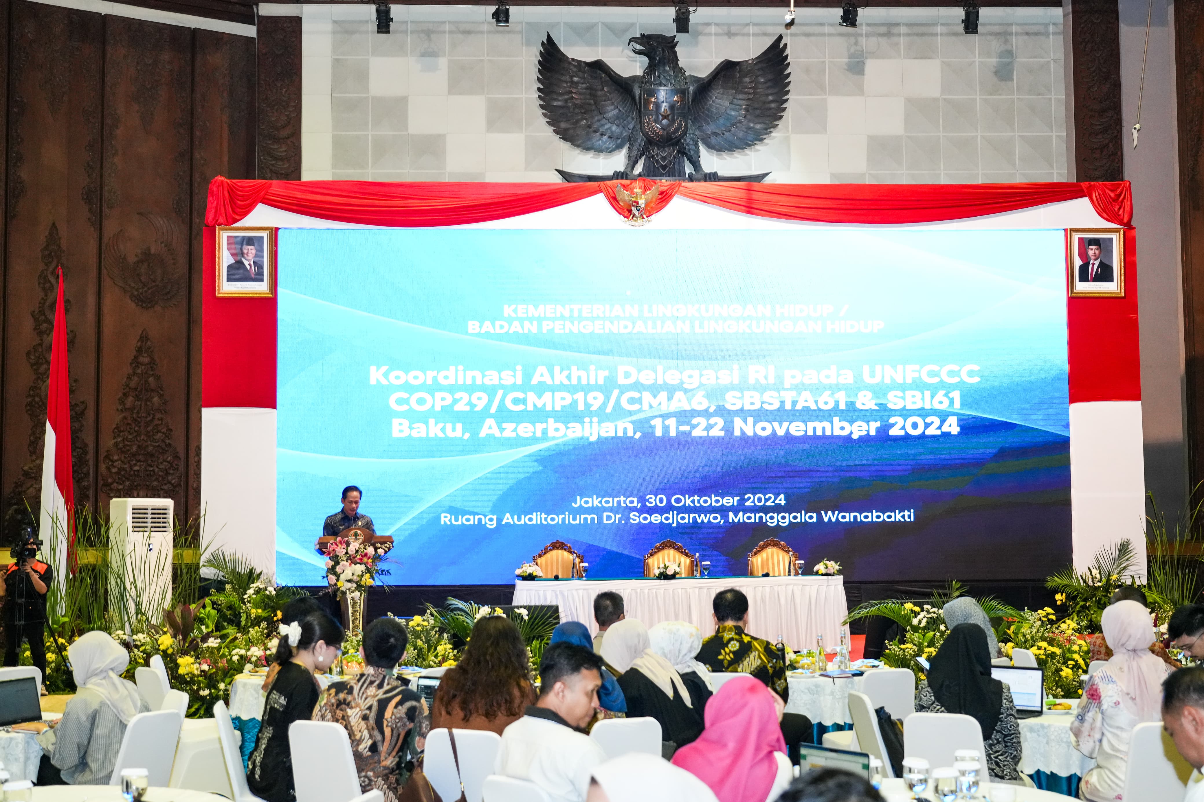 Menteri Lingkungan Hidup, Hanif Faisol Nurofiq, menyampaikan arahan dan apresiasinya kepada para delegasi Indonesia yang tengah bersiap menghadiri pertemuan Konferensi Perubahan Iklim Perserikatan Bangsa-Bangsa / Conference of the Parties (COP) ke-29, yang akan berlangsung pada 11 hingga 22 November 2024 di Baku Olympic Stadium, Azerbaijan.