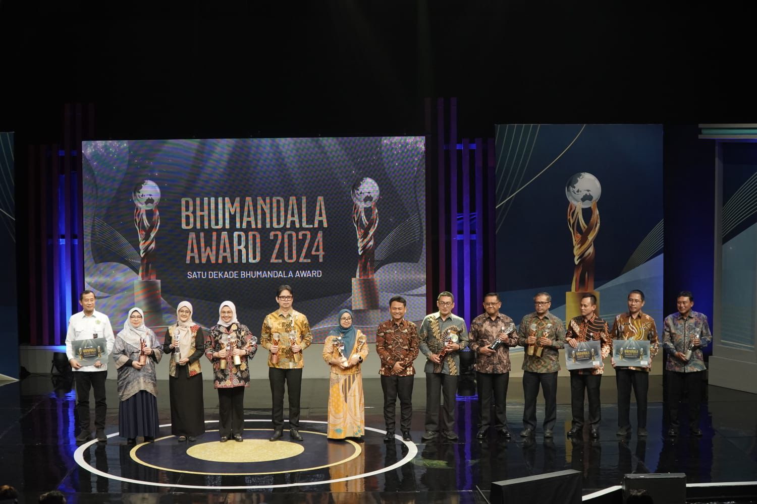 Kementerian Lingkungan Hidup dan Kehutanan mendapatkan Penghargaan Bhumandala Tahun 2024 untuk tiga kategori di Jakarta, Senin, (04/11/2024). Penghargaan Bhumandala diterima oleh Direktur Jenderal Pengelolaan Daerah Aliran Sungai dan Rehabilitasi Hutan (PDAS RH) Dyah Murtiningsih yang mewakili Menteri Kehutanan Raja Juli Antoni