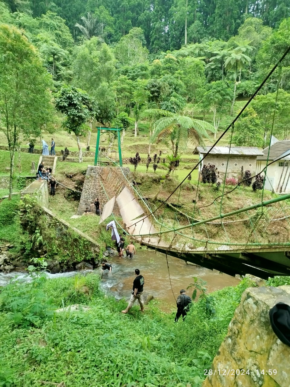 Sukabumi, 24 Desember 2024 – Pada hari Senin, 23 Desember 2024 telah terjadi musibah kecelakaan yang menimpa pengunjung di wilayah Resort Pengelolaan Taman Nasional Wilayah (RPTNW) Kawah Ratu Seksi Pengelolaan Taman Nasional Wilayah (SPTNW) III Sukabumi, Taman Nasional (TN) Gunung Halimun Salak akibat rusaknya jembatan penyeberangan sepanjang 26 meter dan tinggi sekitar 4 meter dari permukaan Sungai Ciherang yang menghubungkan Blok Hutan Cangkuang dan Blok Hutan Kabayan menuju Curug Dua Undak dengan kronologis kejadian sebagai berikut: