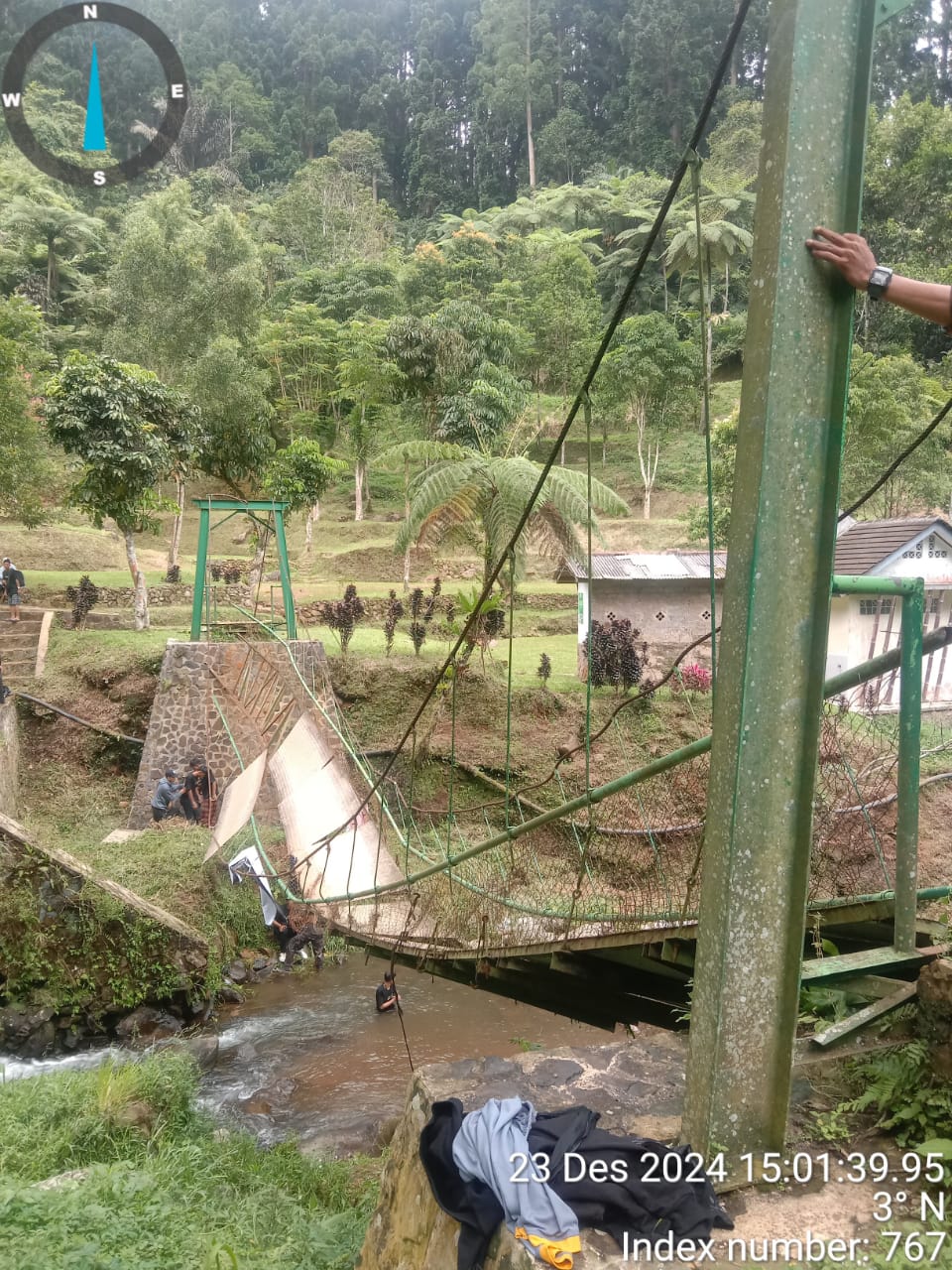 3. Beban berlebih dan aktivitas para santri ini terindikasi sebagai pemicu jembatan menjadi tidak stabil dan mengakibatkan kerusakan pada pengait kabel sling (hook). Sehingga, jembatan rusak;