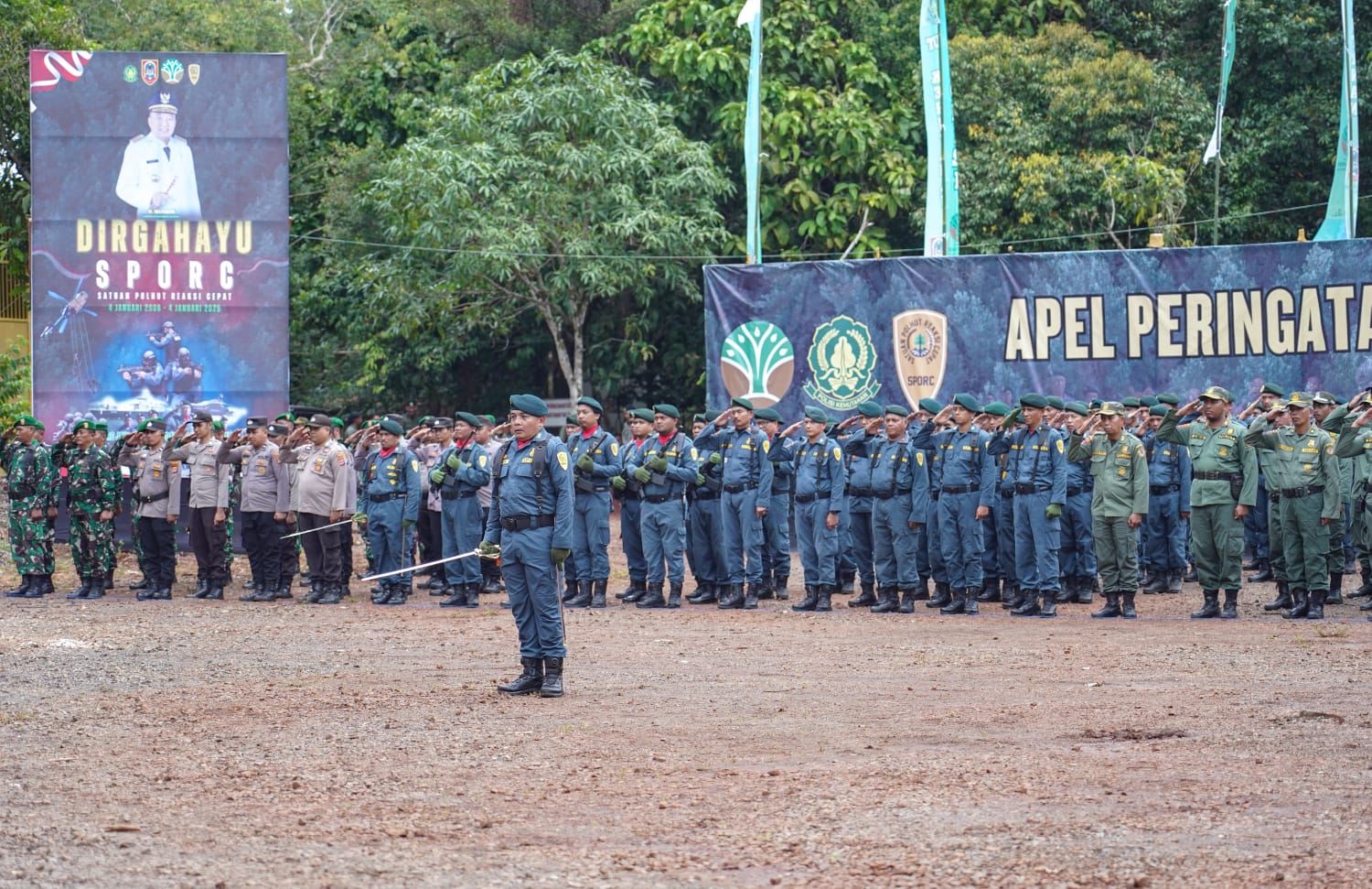 Wakil Menteri Kehutanan Sulaiman Umar mewakili Menteri Kehutanan memimpin langsung apel peringatan hari ulang tahun Satuan Polhut Reaksi Cepat (SPORC) ke-19 yang dilaksanakan di Taman Hutan Raya (Tahura) Sultan Adam Banjarbaru, Kalimantan Selatan, pada Jumat 24 Januari 2025.