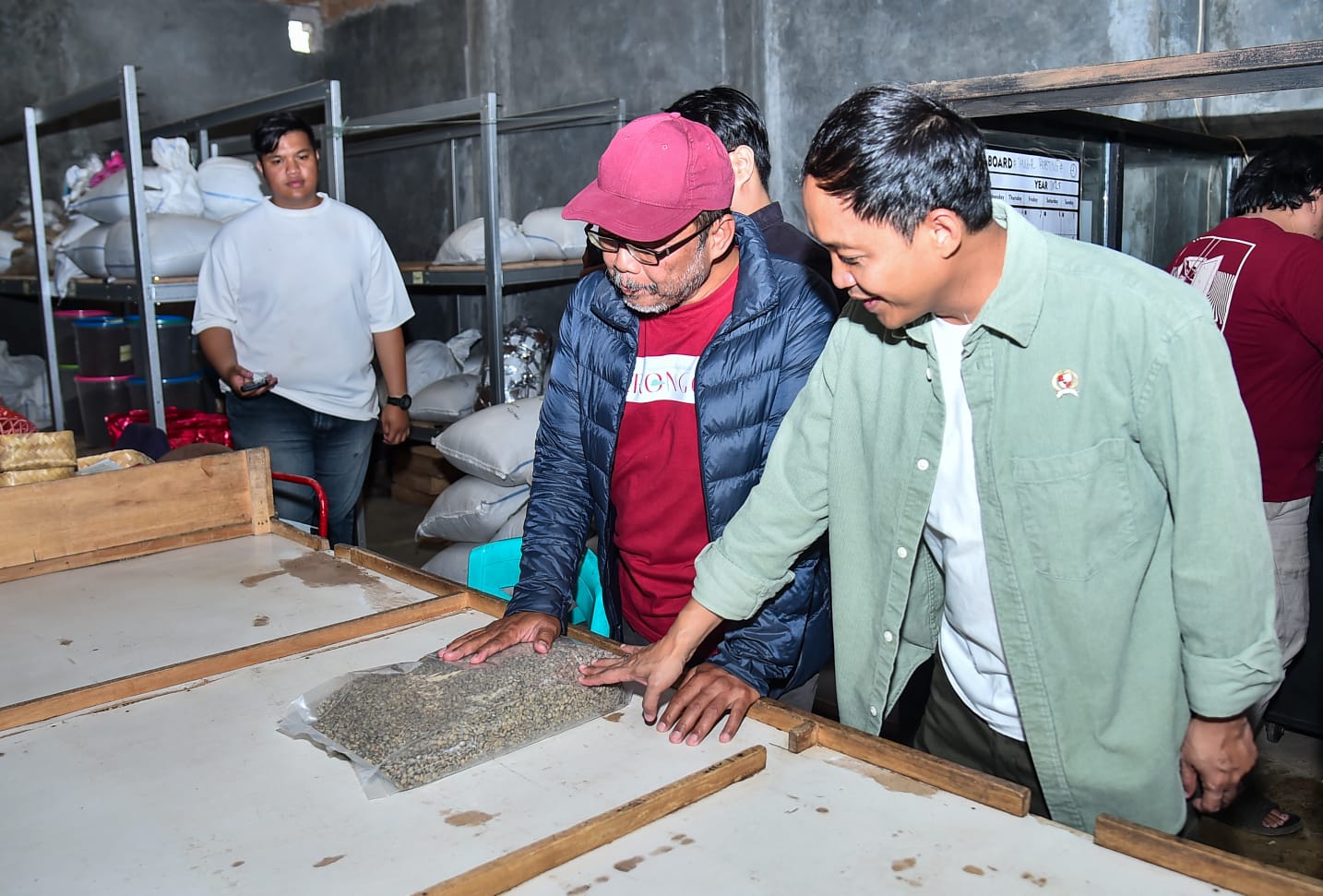 Menteri Kehutanan, Raja Juli Antoni, mengunjungi Kampung Sarongge, Kabupaten Cianjur, dalam rangka meninjau pelaksanaan program Perhutanan Sosial khususnya proses pengolahan Kopi Sarongge, pada Sabtu, 22 Maret 2025. Menhut Raja Antoni melihat langsung pengolahan kopi Sarongge, serta berdialog dengan kelompok tani hutan, penyuluh, pendamping dan masyarakat setempat.