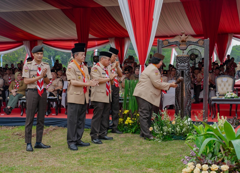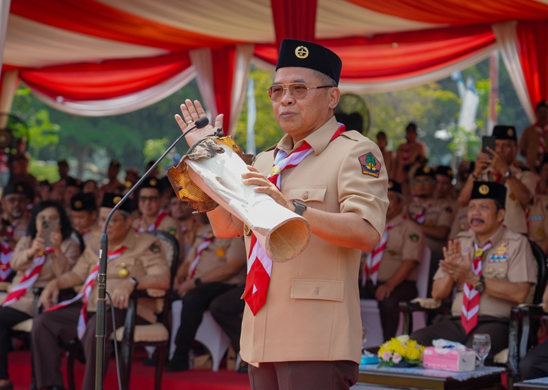 Wakil Menteri Lingkungan Hidup dan Kehutanan, Alue Dohong yang hadir mewakili Menteri Siti Nurbaya, menutup Perkemahan Bakti Saka Kalpataru dan Saka Wan...