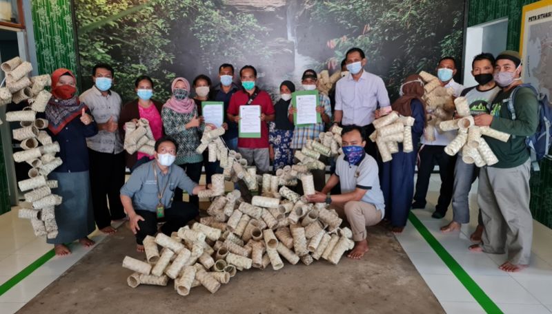 Tiga ketua kelompok kemitraan konservasi binaan Balai Taman Nasional Gunung Palung (TANAGUPA) melakukan penandatanganan kesepakatan kerja/kontrak kerja pembua...