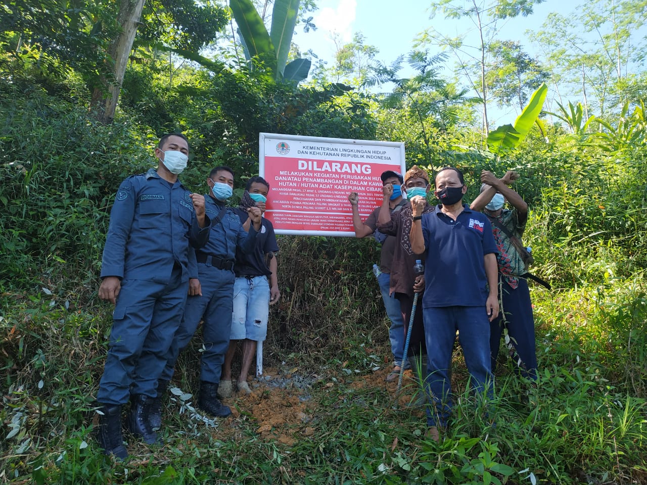 Tim gabungan KLHK, Polri, TNI, Pemda Kab. Lebak, Perum Perhutani, dan masyarakat adat Kasepuhan Cibarani, menghentikan aktivitas penambangan ...