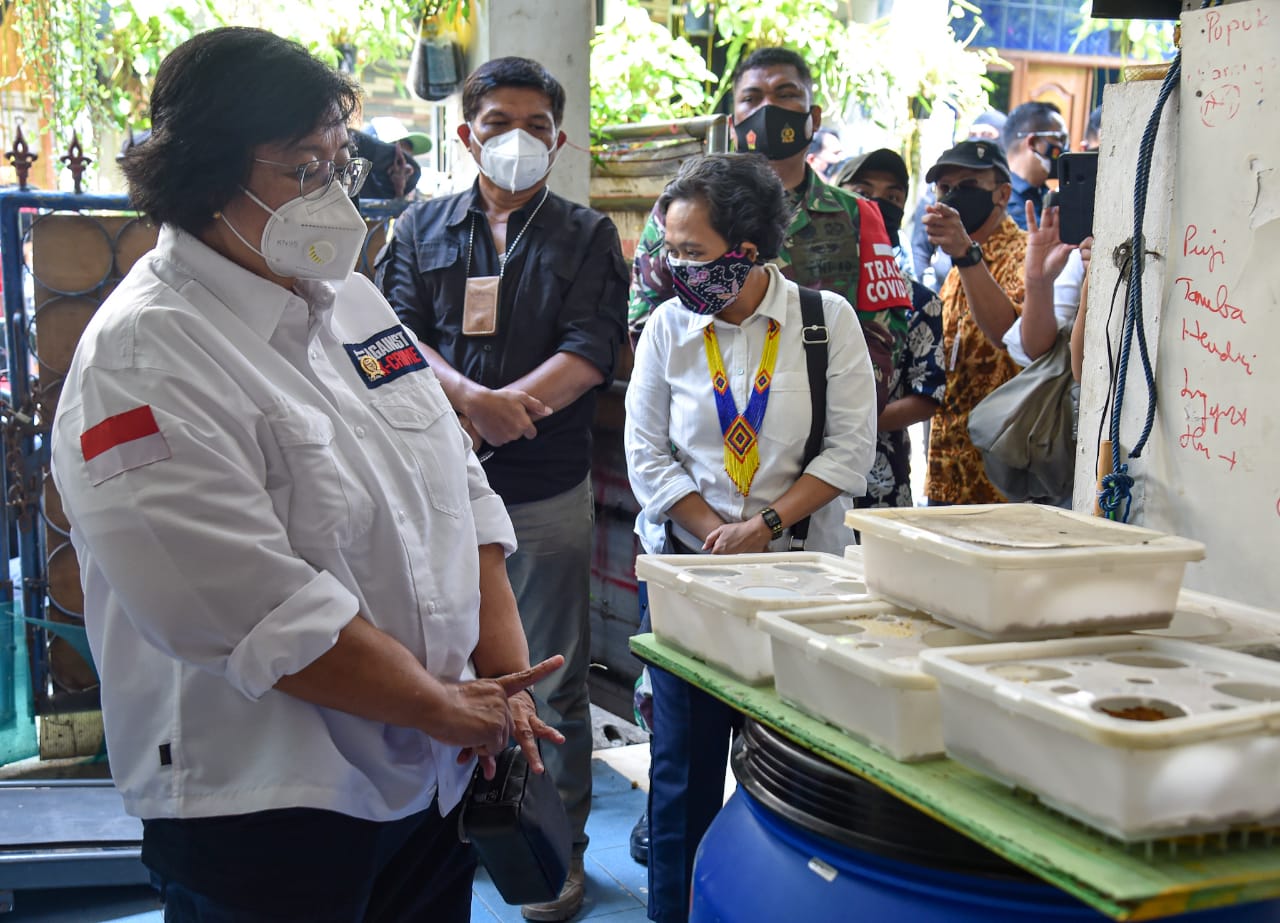 Menteri LHK, Siti Nurbaya mengunjungi Kampung Ikim di Karawaci Tangerang dan di Sunter, Jakarta Utara, Kamis (18/3/2021). Dalam kunjungan kerja ini...