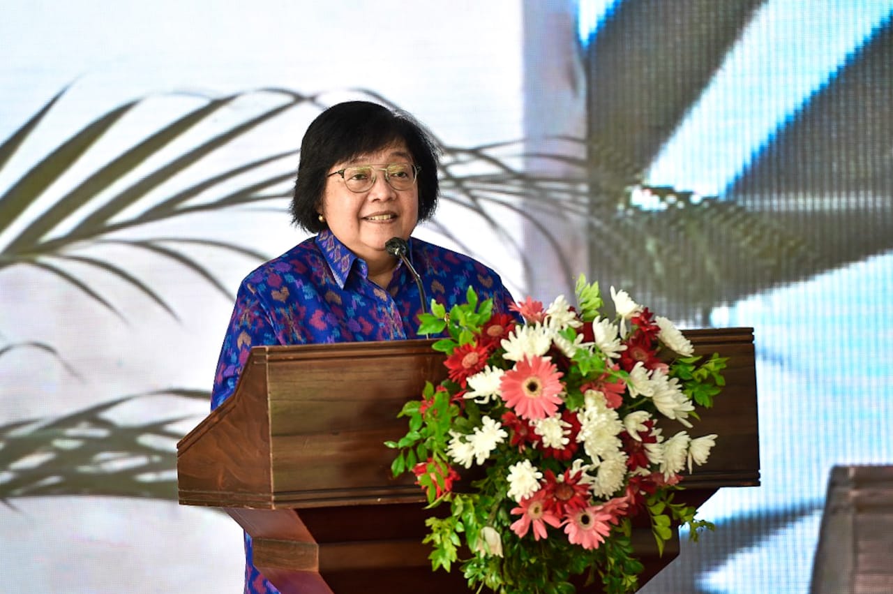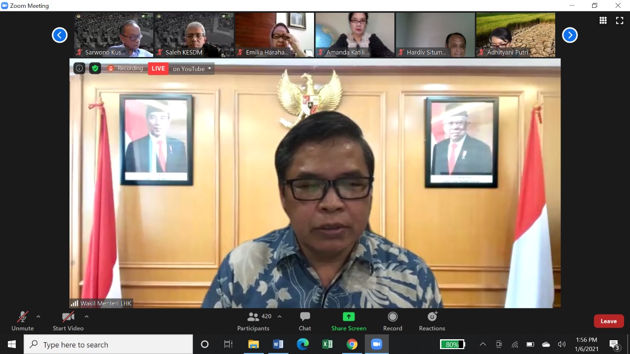 Menteri LHK Siti Nurbaya menyampaikan refleksi kinerja KLHK selama tahun 2020, dan persiapan langkah-langkah sektor LHK tahun 2021, pada acara Ref...