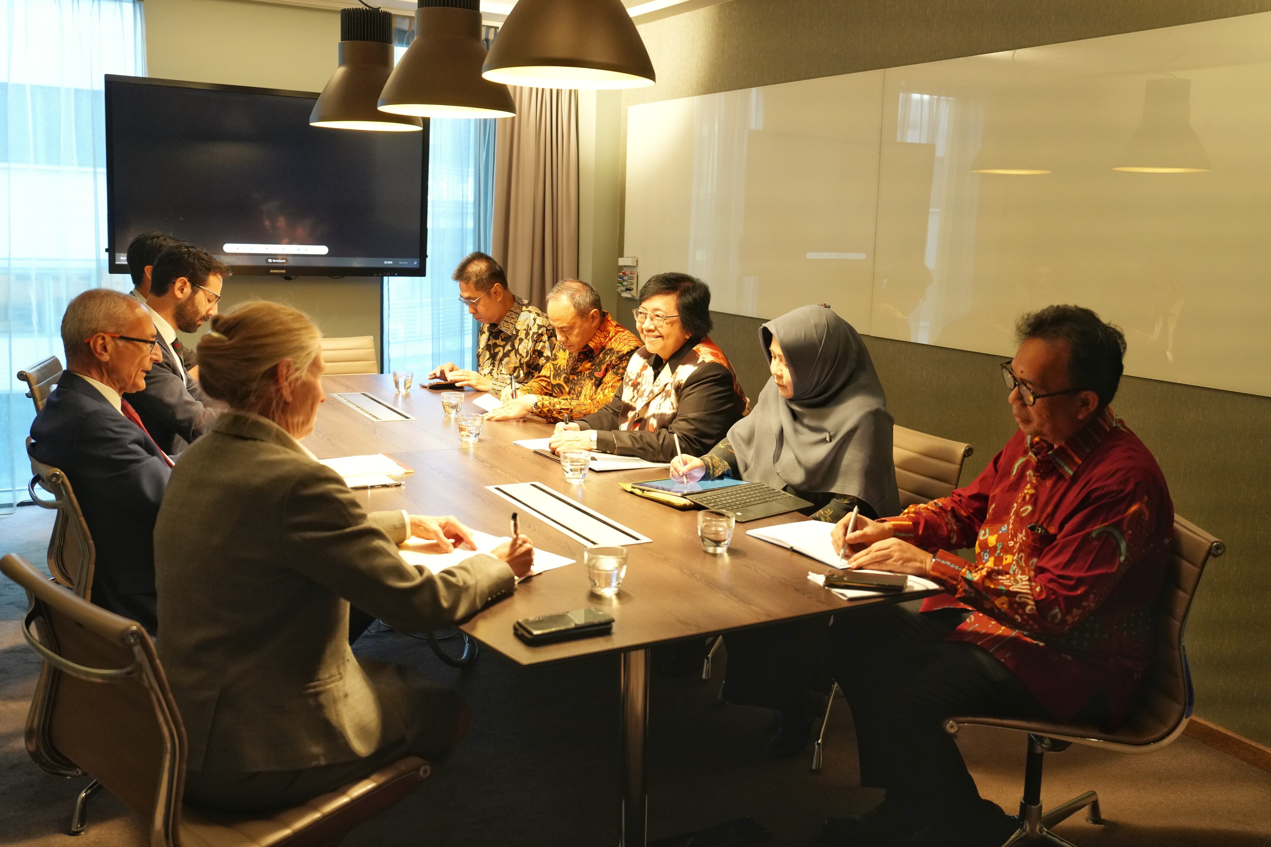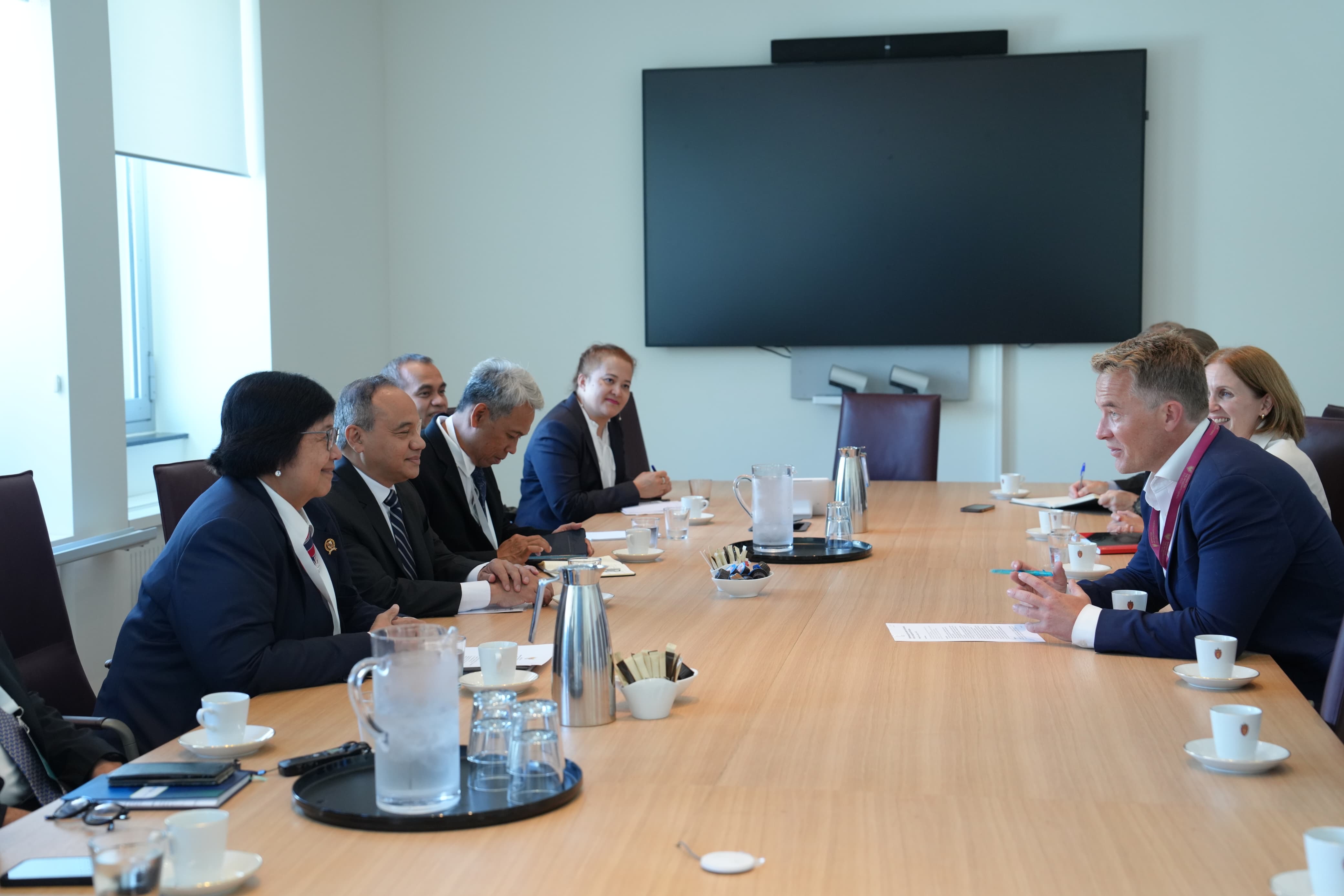 Menteri Lingkungan Hidup dan Kehutanan (LHK), Siti Nurbaya, dan Menteri Iklim dan Lingkungan Norwegia, Andreas Bjelland Eriksen melakukan pertemuan b...