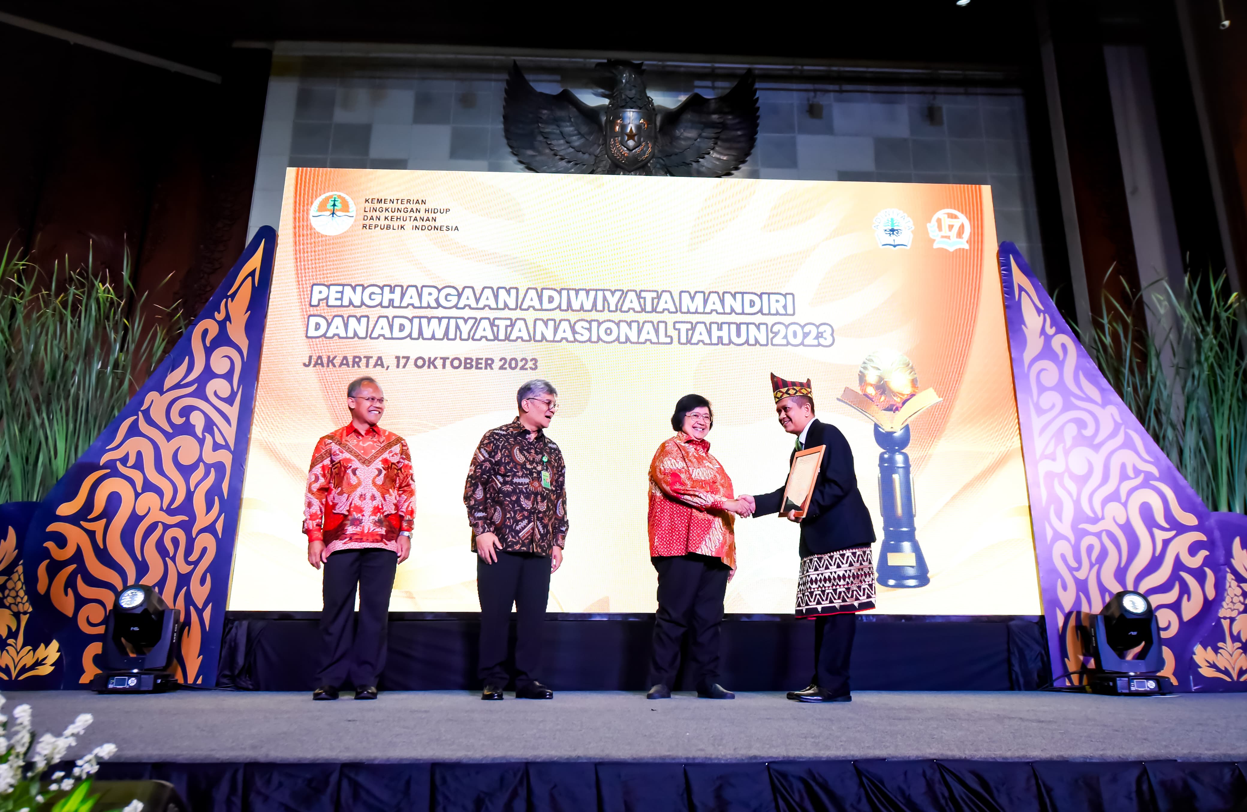 KLHK memberikan penghargaan Sekolah Adiwiyata Tahun 2023 di Jakarta, Selasa (17/10). Menteri LHK Siti Nurbaya menyerahkan ...