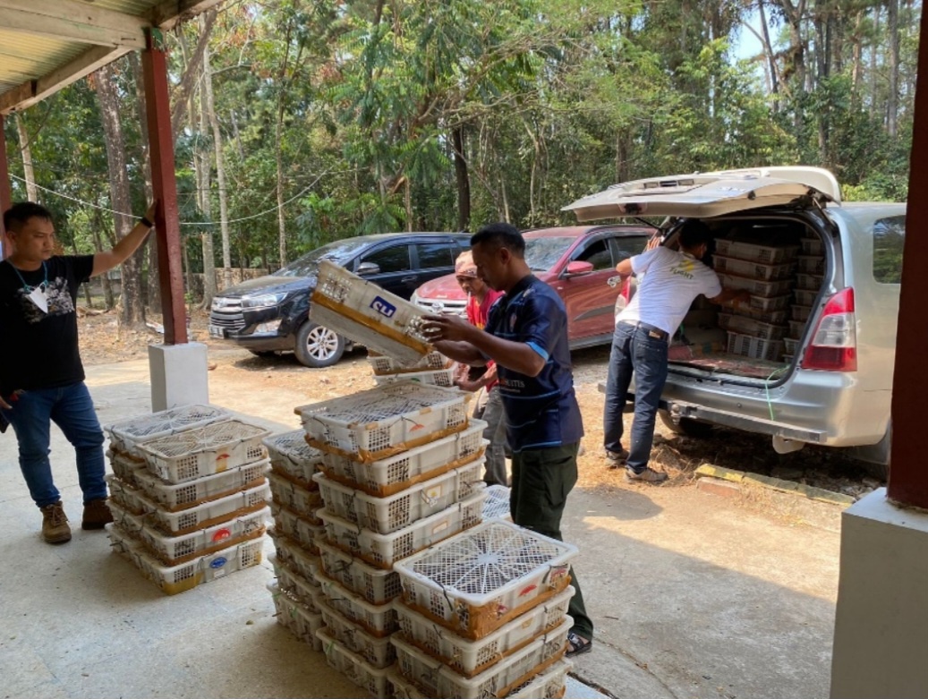 Balai Konservasi Sumber Daya Alam Sumatera Selatan (BKSDA Sumsel) menerima serahan satwa burung yang berasal dari penggagalan dugaan adanya pe...