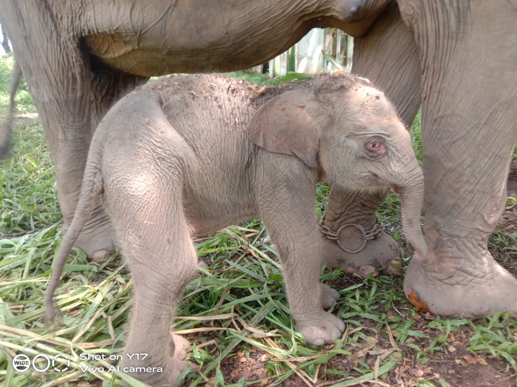 Seekor anak gajah sumatera (Elephas maximus sumatranus) lahir di Pusat Latihan Gajah (PLG) Balai Taman Nasional Way Kambas (BTNW...