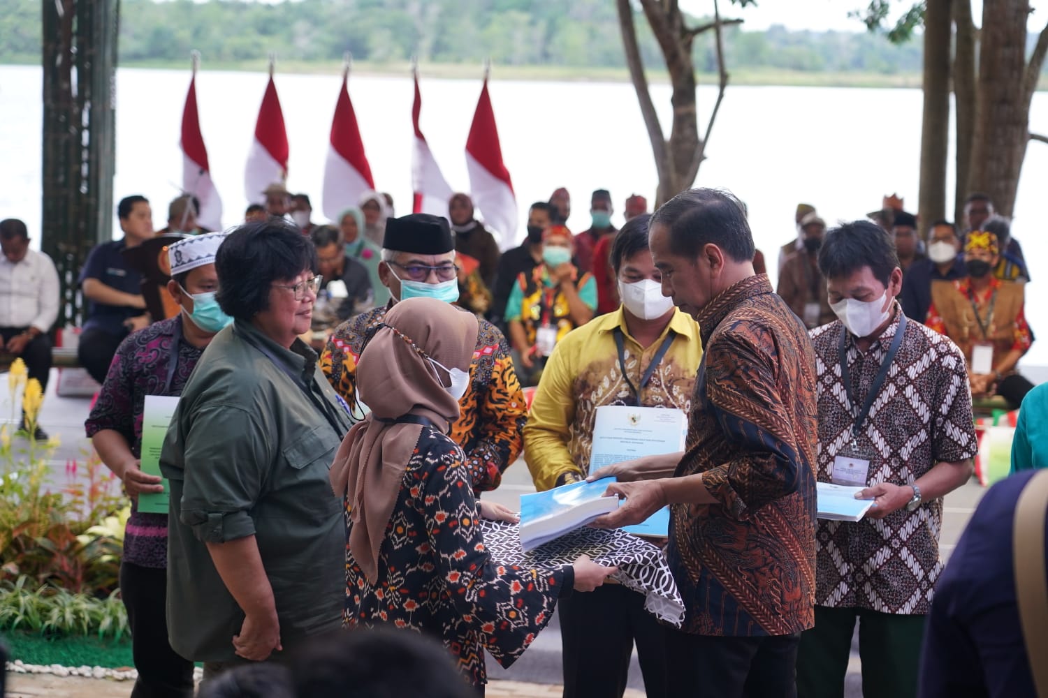 Presiden RI Joko Widodo menyerahkan Surat Keputusan (SK) Perhutanan Sosial dan SK Tanah Obyek Reforma Agraria (TORA) di kawasan Wisata Hutan B...