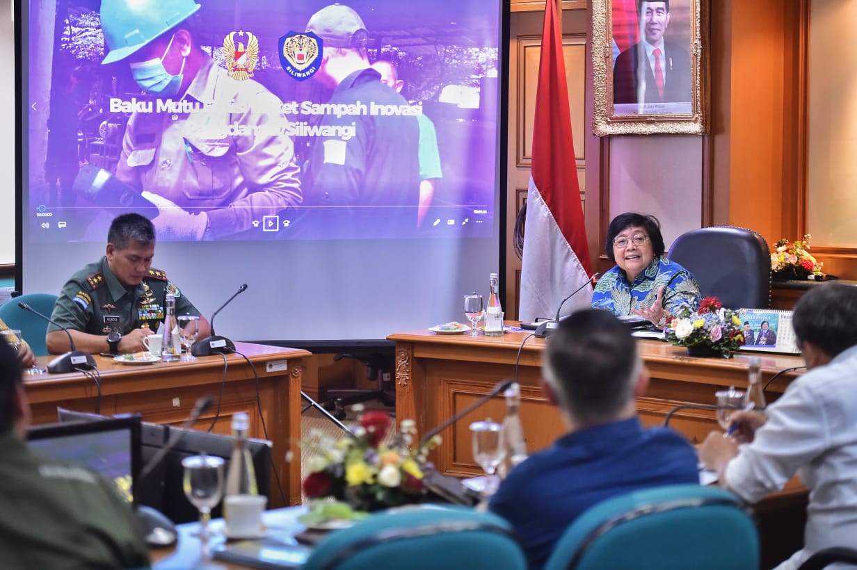 Menteri Lingkungan Hidup dan Kehutanan (LHK), Siti Nurbaya melakukan pertemuan dengan Panglima Komando Daerah Militer (Pangdam) III/Siliwangi, Mayor Jendera...
