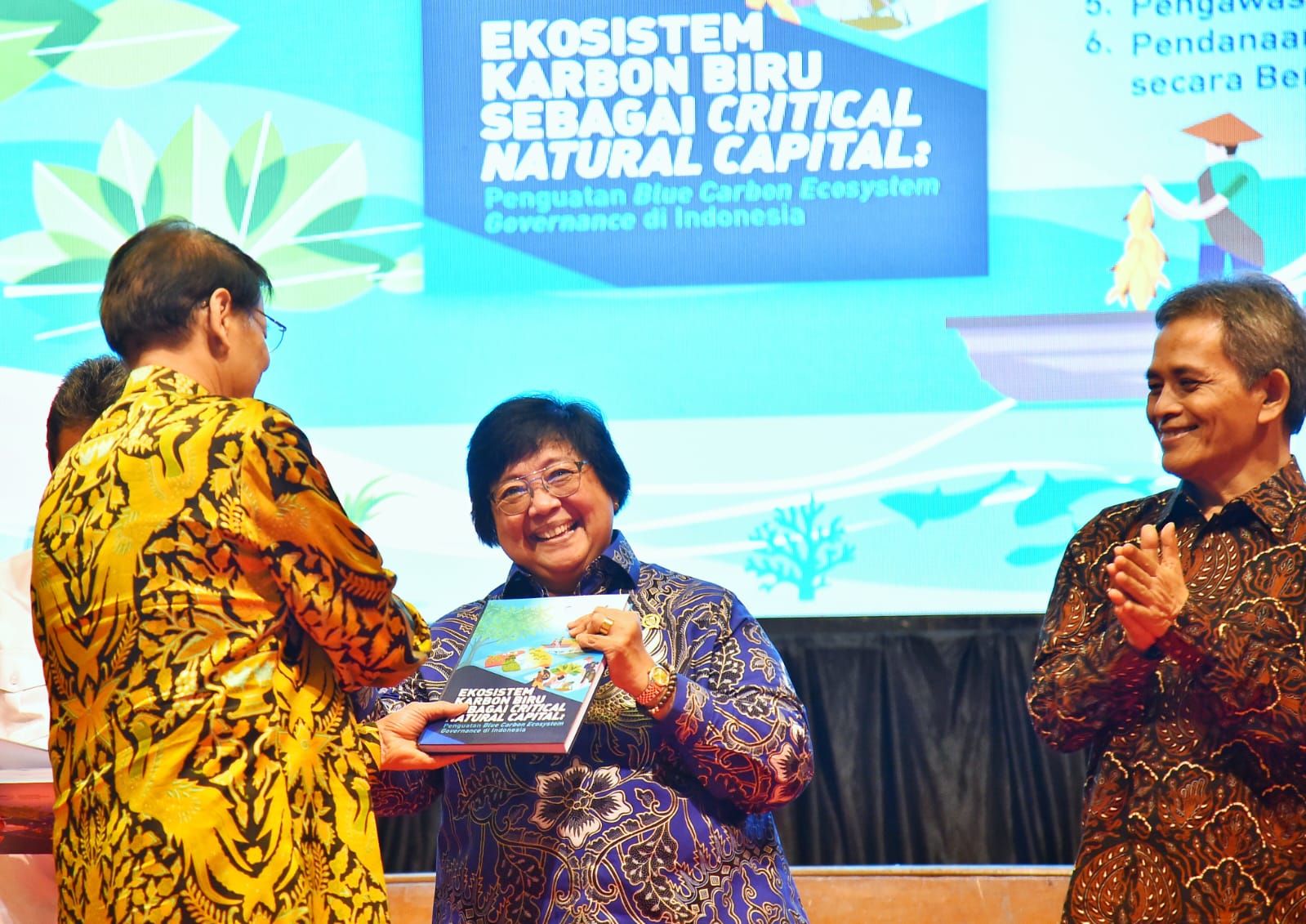 Menteri Lingkungan Hidup dan Kehutanan RI bersama Menteri Kelautan dan Perikanan RI menyampaikan sambutan kunci pada seminar peluncuran hasil s...