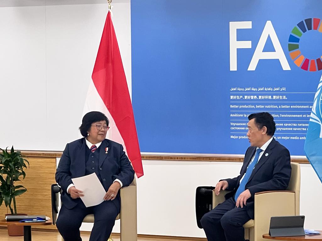 Menteri Lingkungan Hidup dan Kehutanan (LHK) Siti Nurbaya melakukan pertemuan bilateral dengan Direktur Jenderal Food and Agriculture Organizati...