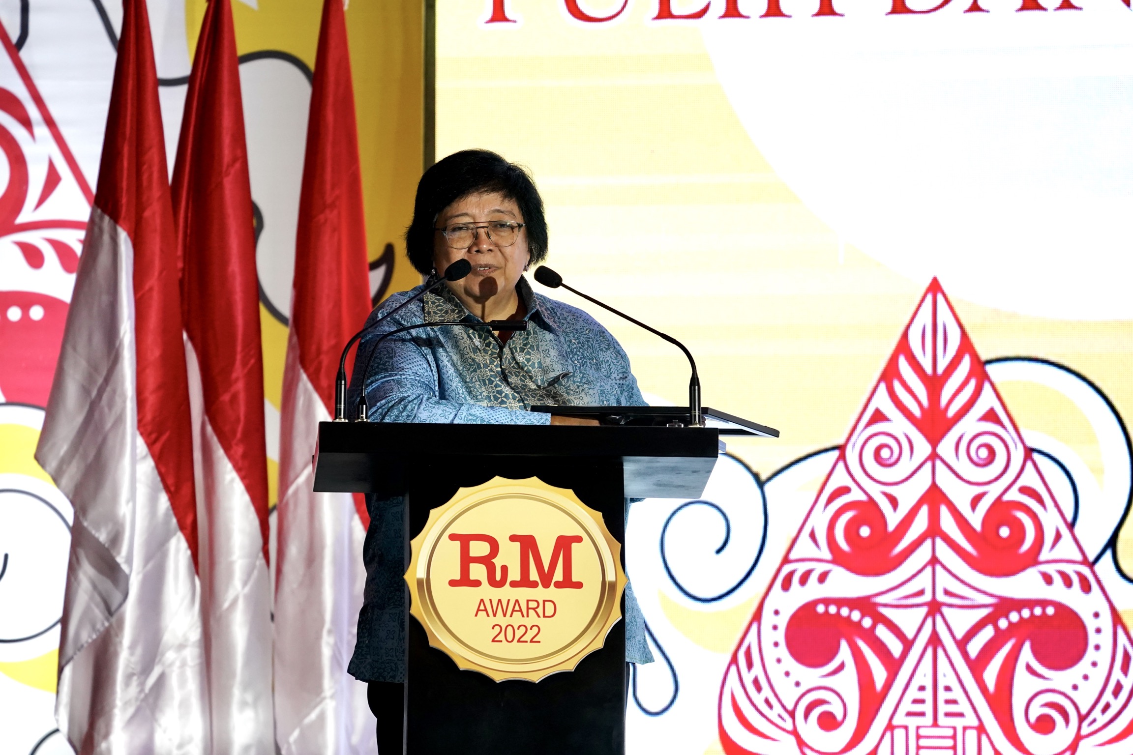 Menteri Lingkungan Hidup dan Kehutanan (LHK), Prof. Siti Nurbaya menerima penghargaan dari salah satu media nasional di Jakarta (28/9/2022), sebagai ...