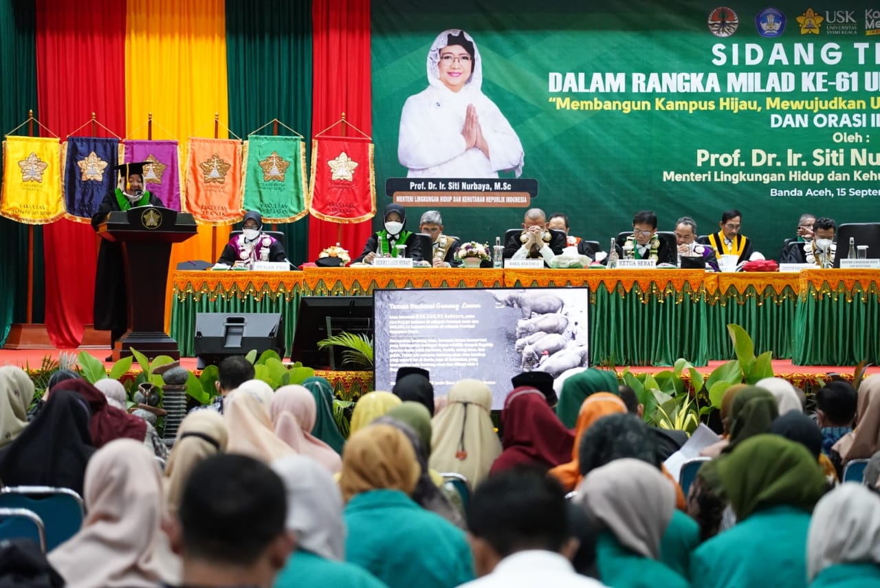 Menteri Lingkungan Hidup dan Kehutanan (LHK) Siti Nurbaya hadir sebagai Dies Reader pada Sidang Terbuka, dalam rangka memperingati milad ke-61...