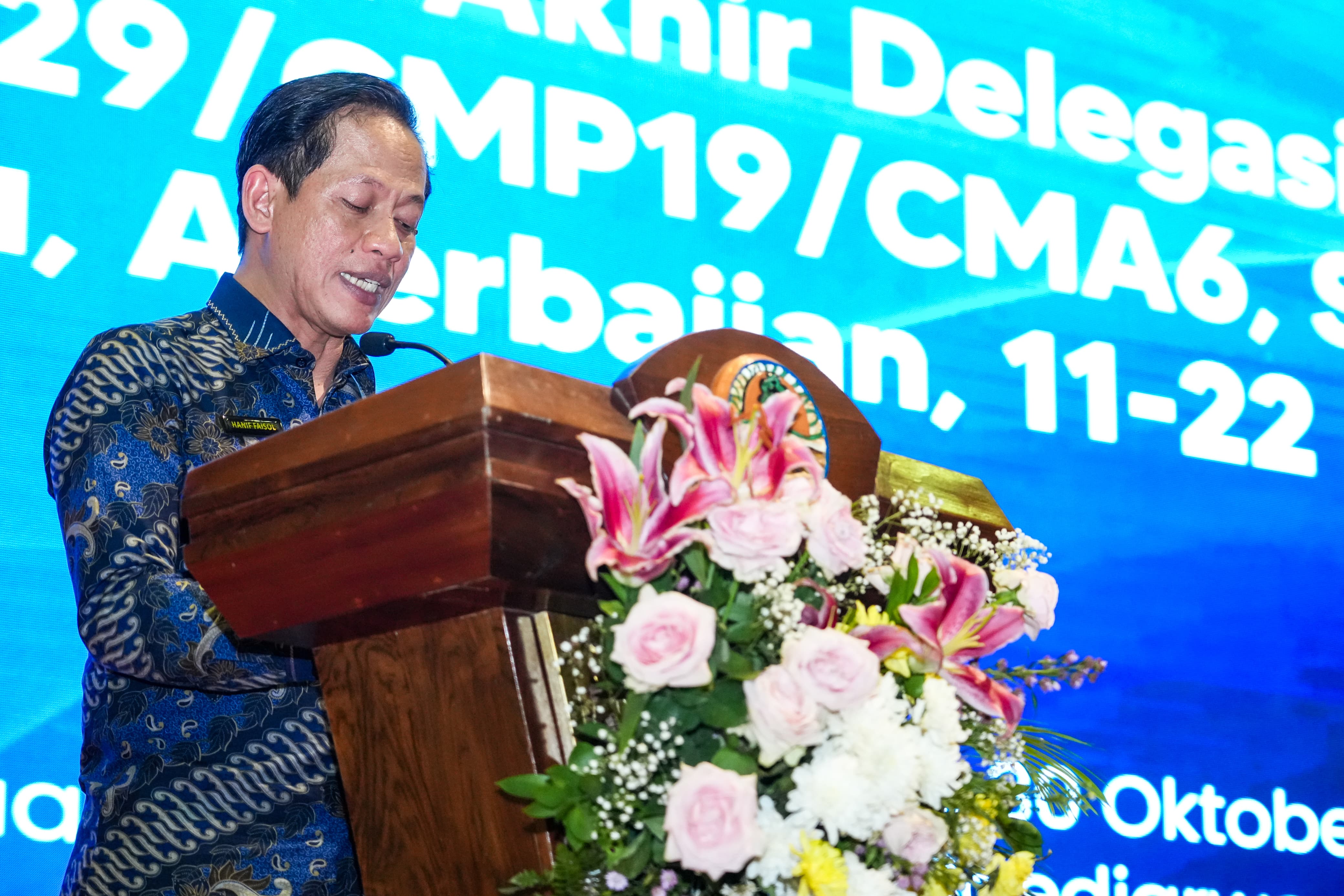 Menteri Lingkungan Hidup, Hanif Faisol Nurofiq, menyampaikan arahan dan apresiasinya kepada para delegasi Indonesia yang tengah bersiap menghad...