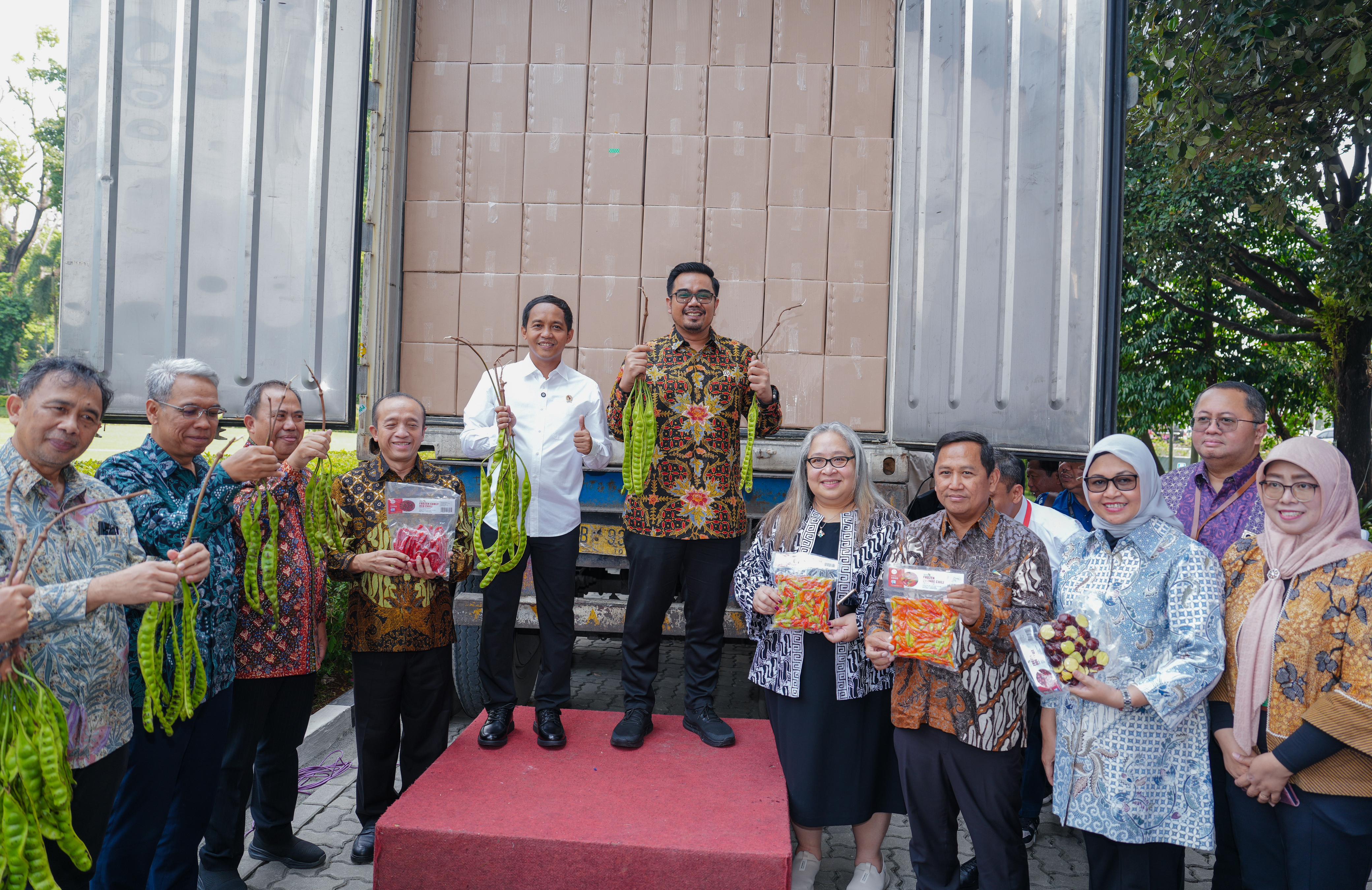 Menteri Kehutanan Raja Juli Antoni dan Wakil Menteri Kehutanan Sulaiman Umar melakukan pelepasan ekspor komoditi agroforestry kelompok perhutanan ...
