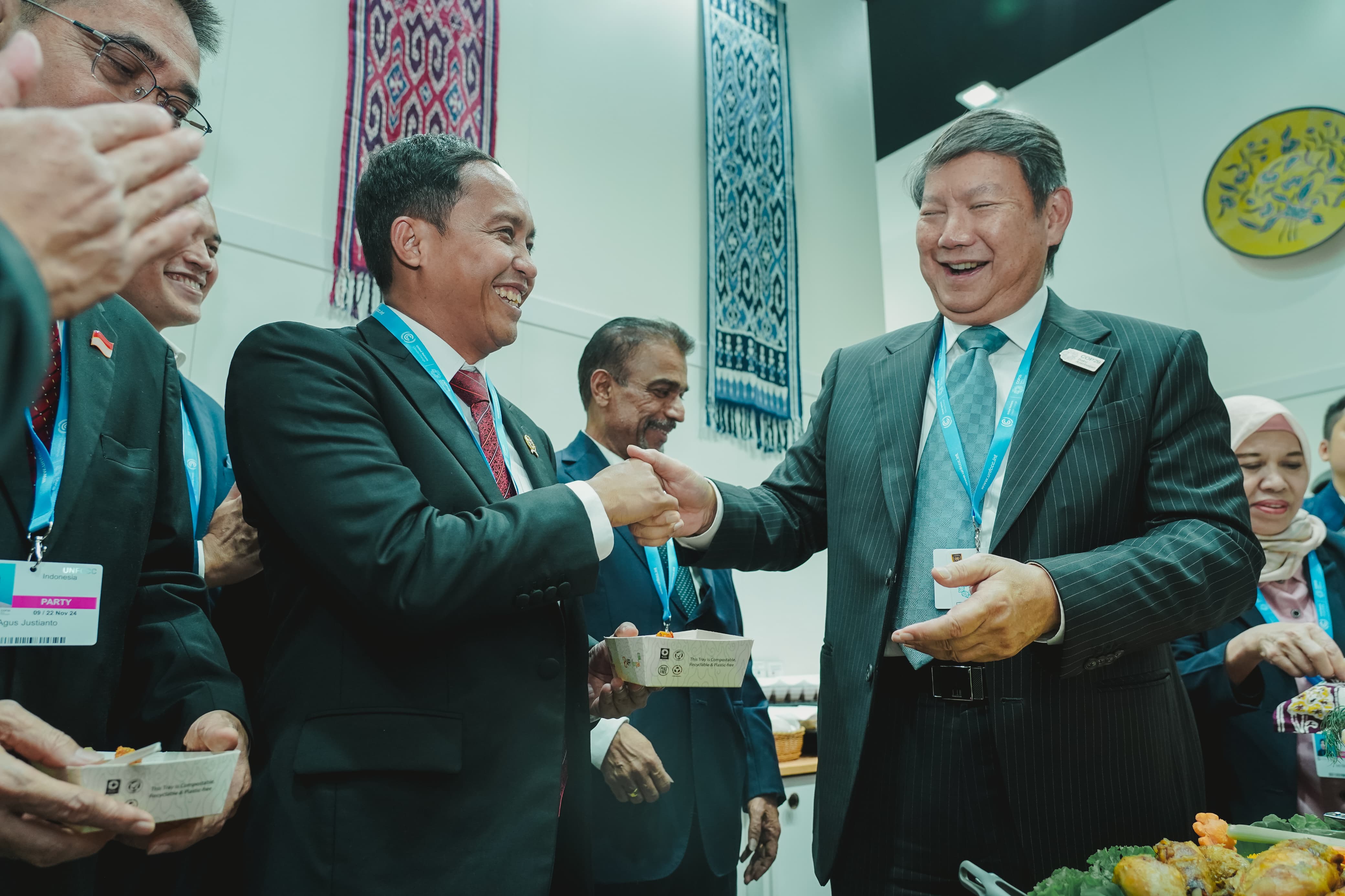 Menteri Kehutanan (Menhut) Raja Juli Antoni melakukan peninjauan venue Paviliun Indonesia di Baku Olympic Stadium, Azerbaijan. Menhut Raja Jul...
