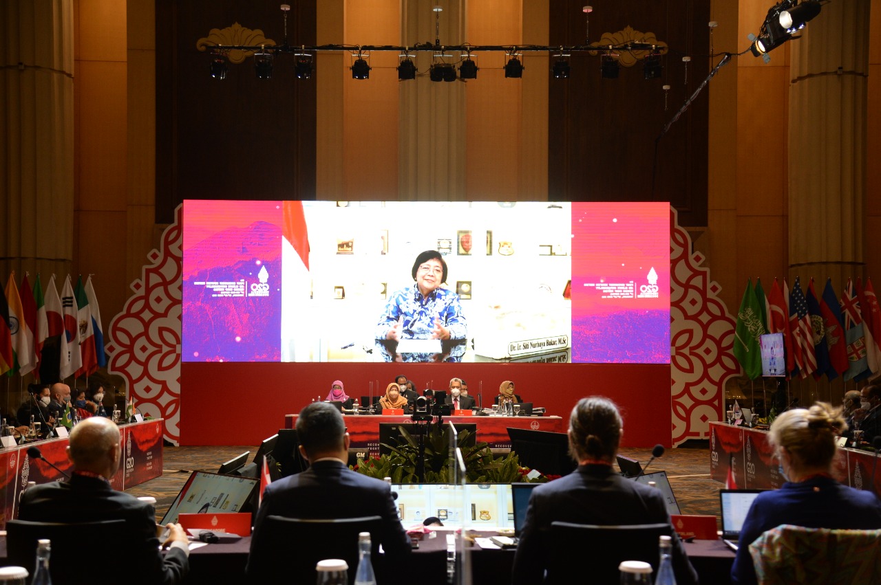 Menteri Lingkungan Hidup dan Kehutanan (LHK), Siti Nurbaya menyambut kehadiran delegasi negara-negara anggota G20 dalam pembukaan Planery G20 Env...