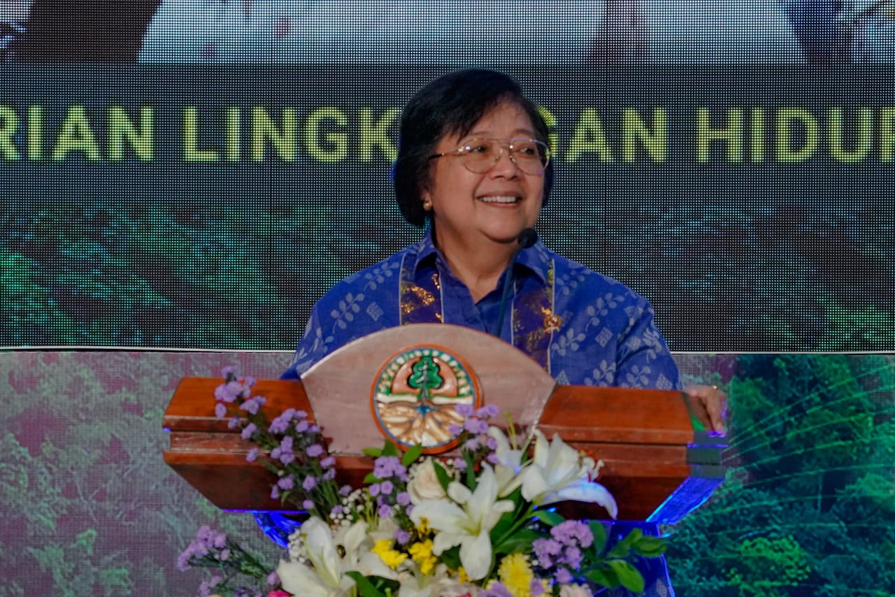 Menteri LHK Siti Nurbaya memberikan penghargaan kepada PT ITCI Kartika Utama (ITCIKU) sebagai pemegang perijinan berusaha pemanfaatan hutan (PBP...