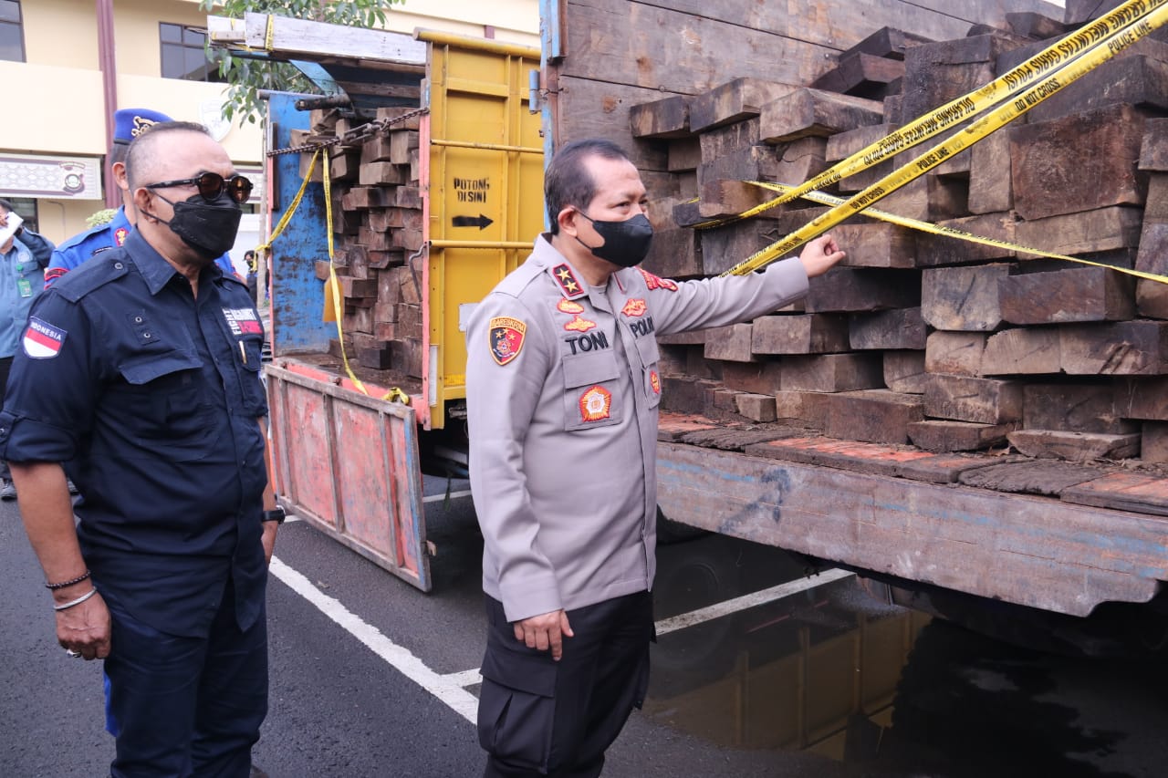 Tim Gabungan Satgas Polda Sumsel dan Tim Gakkum KLHK berhasil menangkap 6 orang pelaku pembalakkan liar di Desa Muara Medak Kecamatan Bayung Lencir, Kabupaten ...