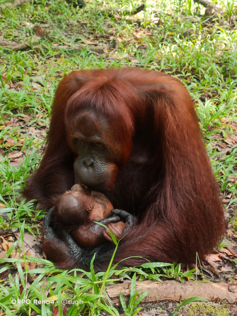 Sebuah kabar baik, seekor bayi orangutan kalimantan (Pongo pygmaeus) lahir di Suaka Margasatwa Lamandau (SML), Kalimantan Tengah dari ind...
