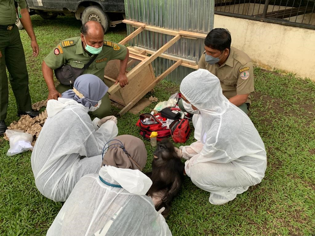 Tim Balai Besar KSDA Sumatera Utara melakukan evakuasi satwa satwa liar yang dilindungi dari rumah pribadi Bupati Langkat non aktif T...