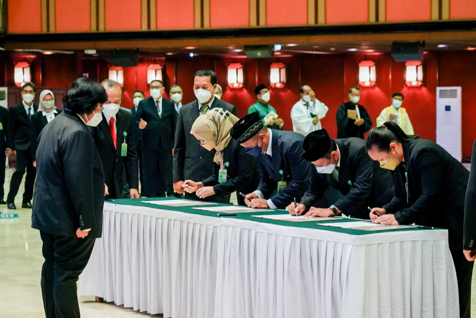 Menteri LHK Siti Nurbaya, didampingi Wakil Menteri LHK Alue Dohong, bersama seluruh jajaran Eselon I Kementerian LHK, melakukan penandatanganan kontrak kinerja...