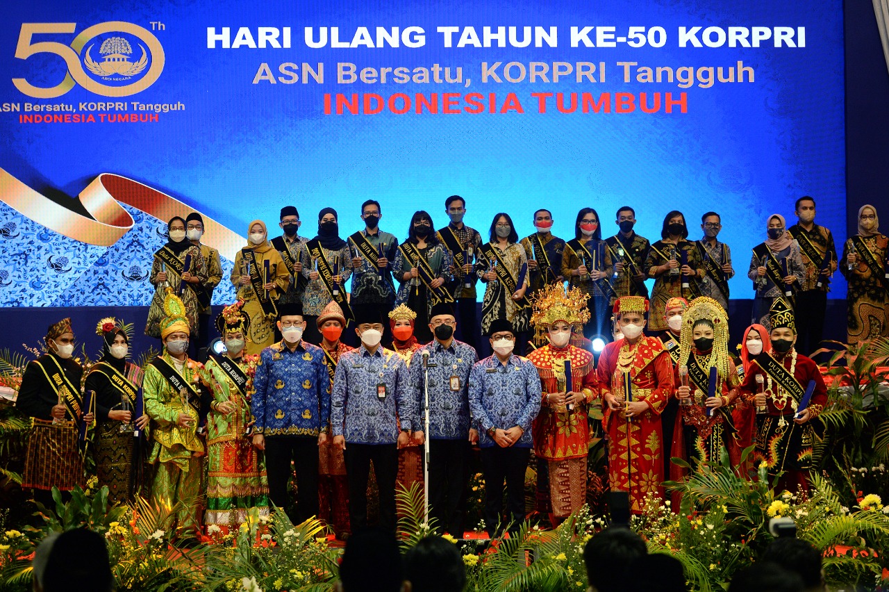 Peringatan Puncak Hari Ulang Tahun (HUT) ke-50 Korps Pegawai Republik Indonesia (KORPRI) diselenggarakan secara daring dan luring dari Auditorium...