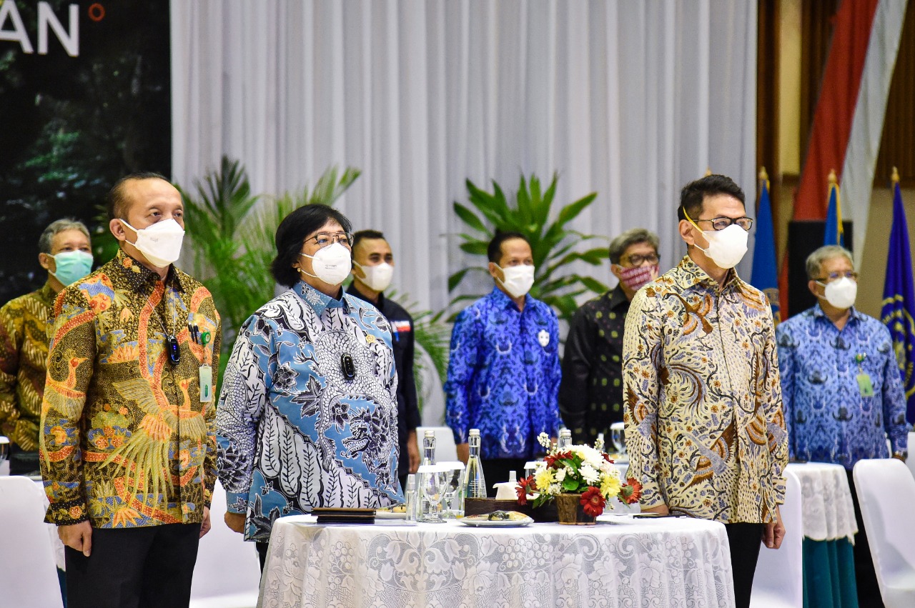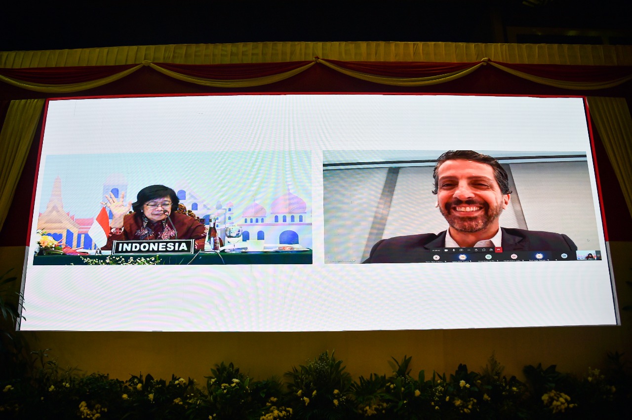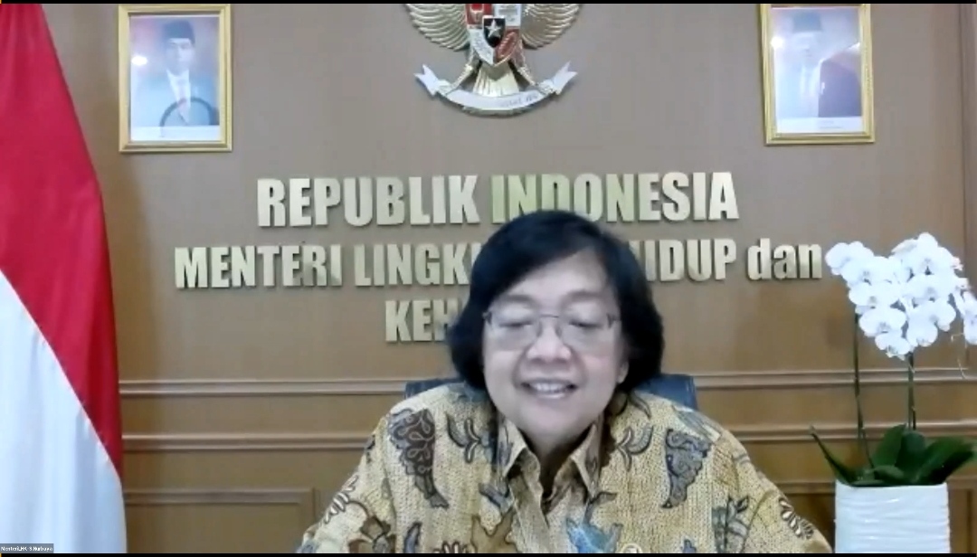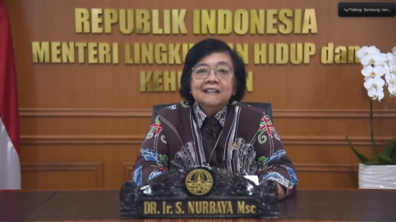 Menteri LHK Siti Nurbaya, Menteri ESDM Arifin Tasrif, dan Duta Besar Indonesia untuk Singapura Suryopratomo menyampaikan statementnya yang me...
