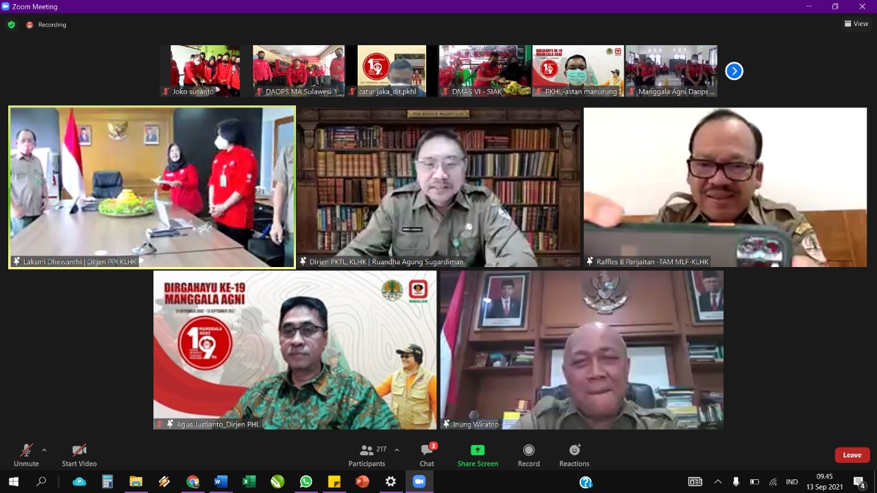 Direktur Jenderal Pengendalian Perubahan Iklim memimpin langsung peringatan Hari Ulang Tahun Manggala Agni secara virtual dan faktual, Senin (13/9/2021). Selama...