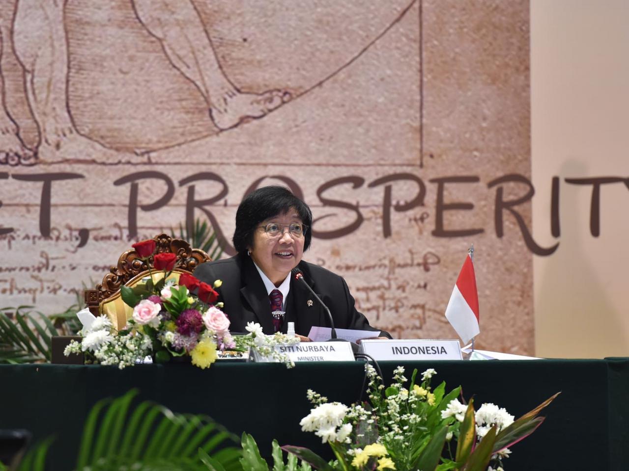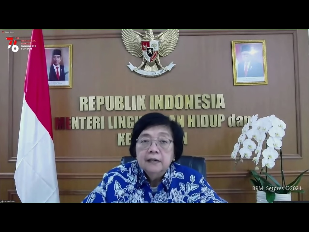 Menteri Lingkungan Hidup dan Kehutanan (LHK), Siti Nurbaya hadir secara virtual bersama Menteri Energi dan Sumber Daya Mineral RI Arifin Tasrif, pada pe...