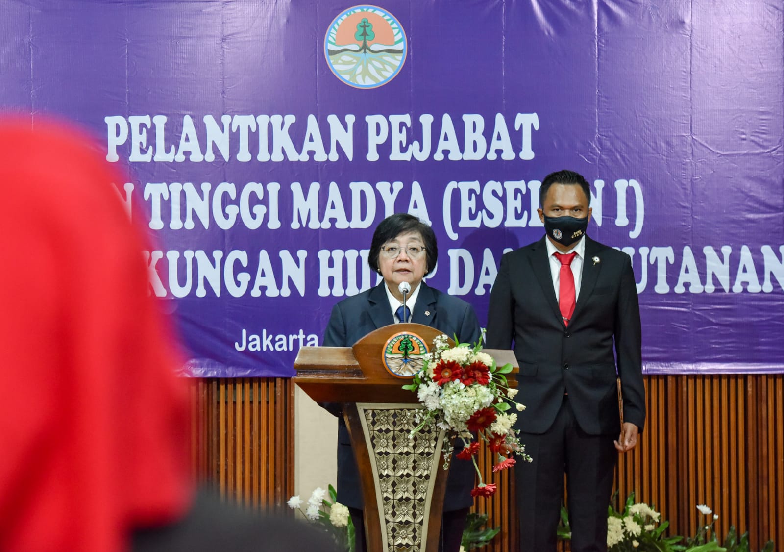 Menteri LHK Siti Nurbaya melantik dua Pejabat Pimpinan Tinggi Madya (Eselon I) yaitu Winarni Monoarfa sebagai Staf Ahli Menteri LHK Bidang Energi, serta ...