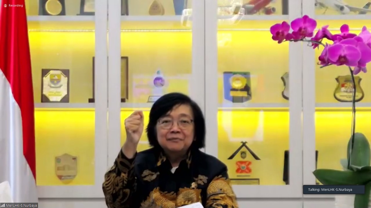 Menteri Lingkungan Hidup dan Kehutanan (LHK) Siti Nurbaya melakukan pertemuan virtual dengan Victoria Kwakwa, World Bank Vice President for East As...